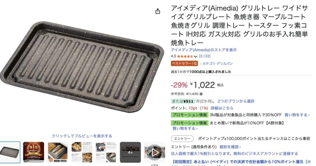 - 西京焼きや塩焼きで大活躍。焦げ付きにくく、後片付けも簡単。